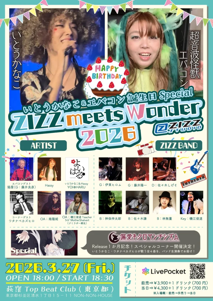 【ライブ情報】2026年3月27日(金)ZIZZ meets Wonder 2026 いとうかなこ&エバコン誕生日 Special